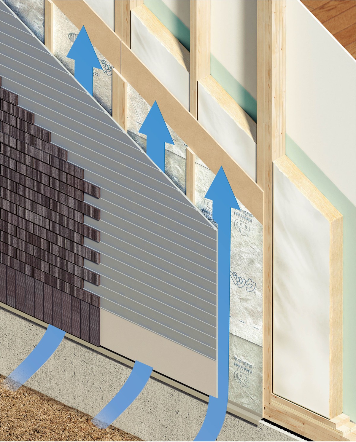 夏は、地面から立ちのぼる高温多湿な空気や外壁材から放出された湿気が、住まいの基礎部分や壁の内部へ侵入します。
