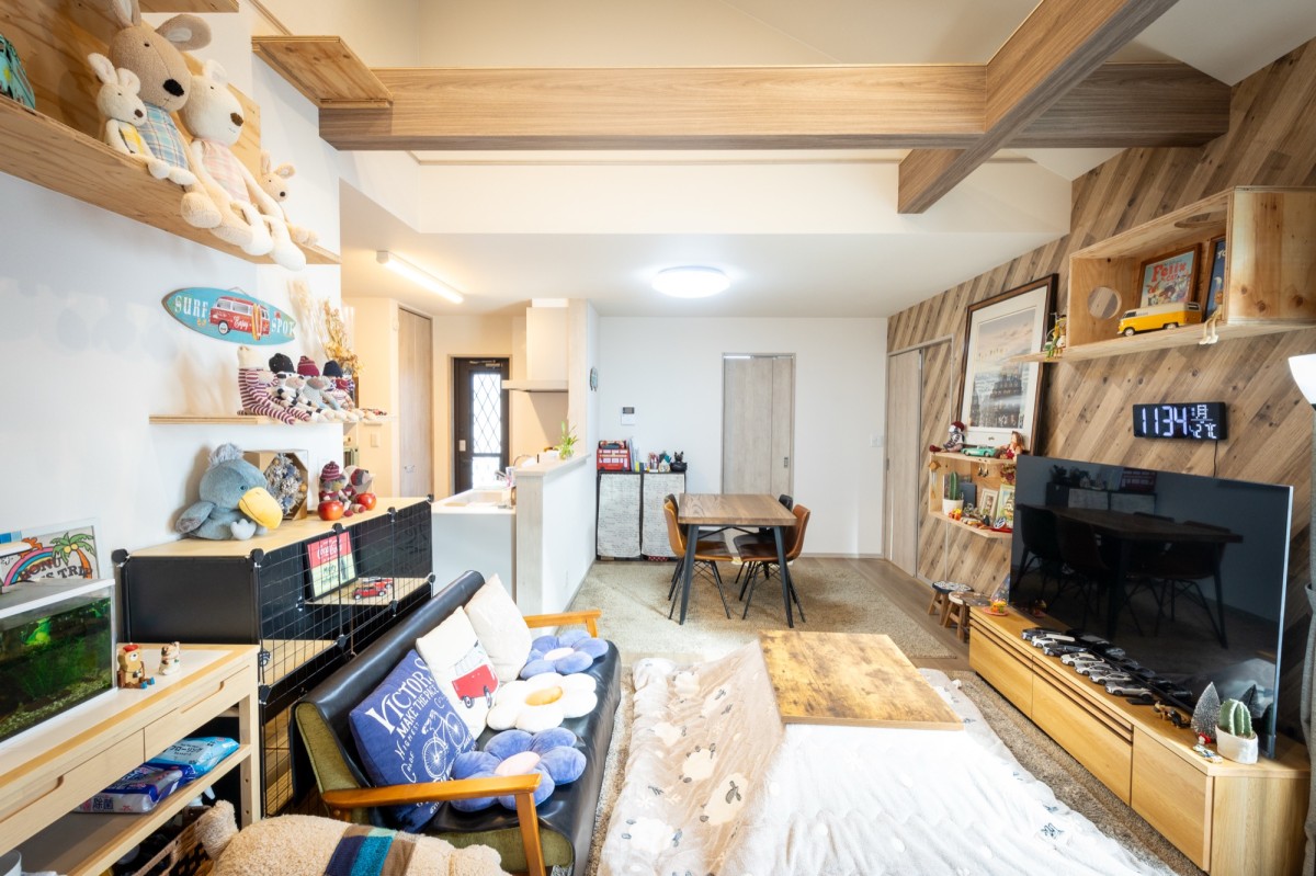 次に、実際に私たちが手がけた平屋の注文住宅の事例を3つ紹介します。「平屋の課題をどのように解決したのか」という点に注目してご覧ください。【事例1】中2階をつくり、収納スペースを確保した平屋
