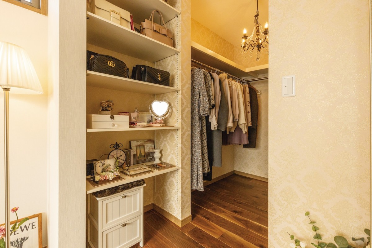 あえて扉を設けないウォークインクローゼットやシューズクロークは、お気に入りの服や靴をショップのディスプレイのようにおしゃれに収納できます。