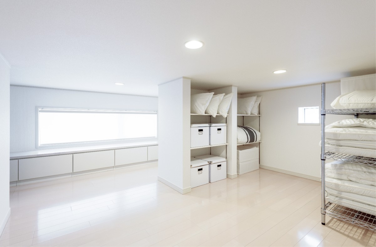 デッドスペースになりがちな小屋裏を有効活用することで、居住空間を圧迫することなく収納量を大幅にアップできます。