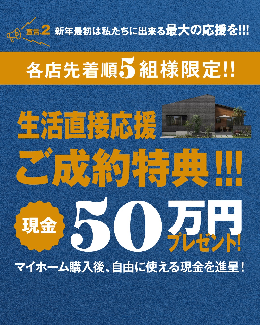 ●【特典2】生活直接応援!ご成約で現金50万円プレゼント!