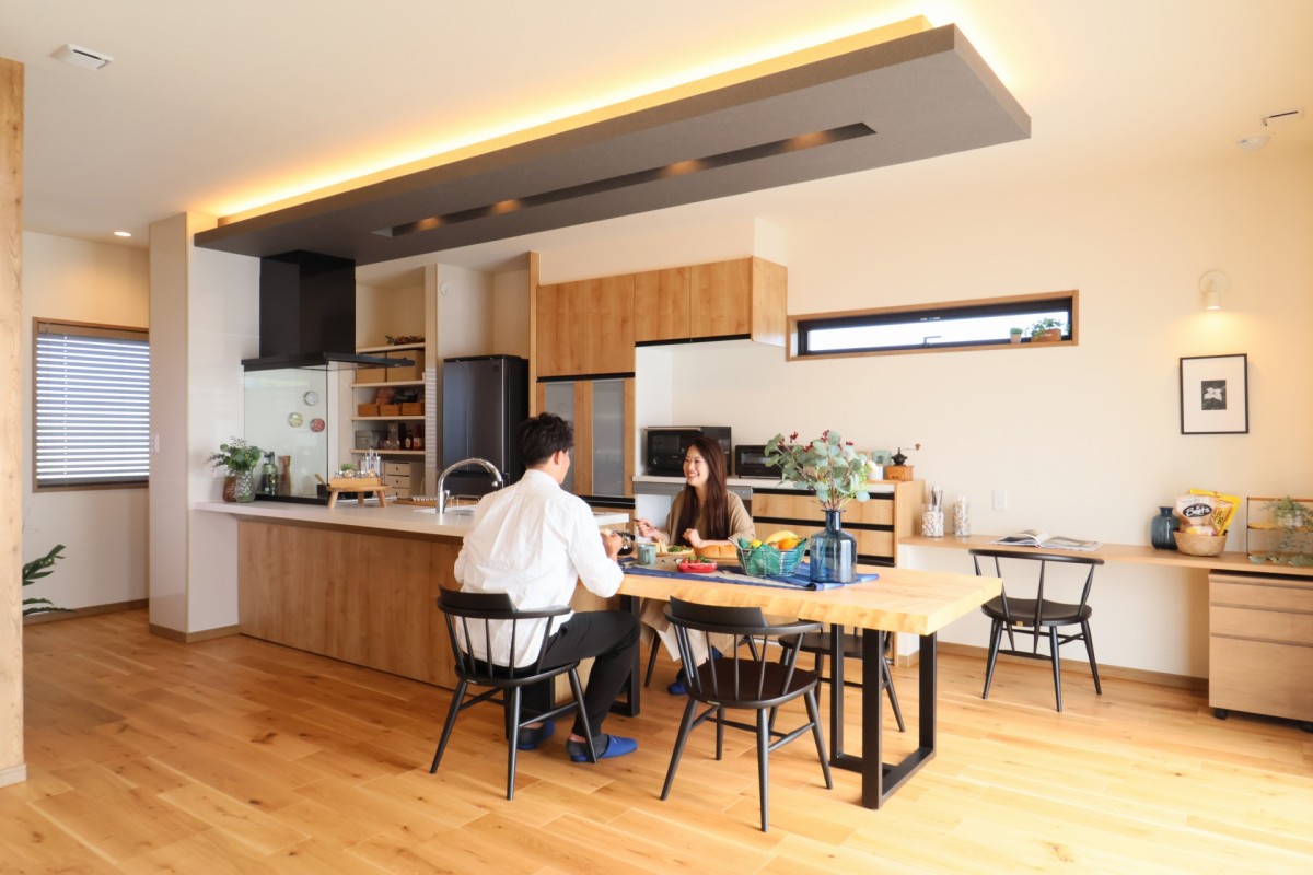 一緒に料理や晩酌を楽しむ対面キッチンと広めのダイニング