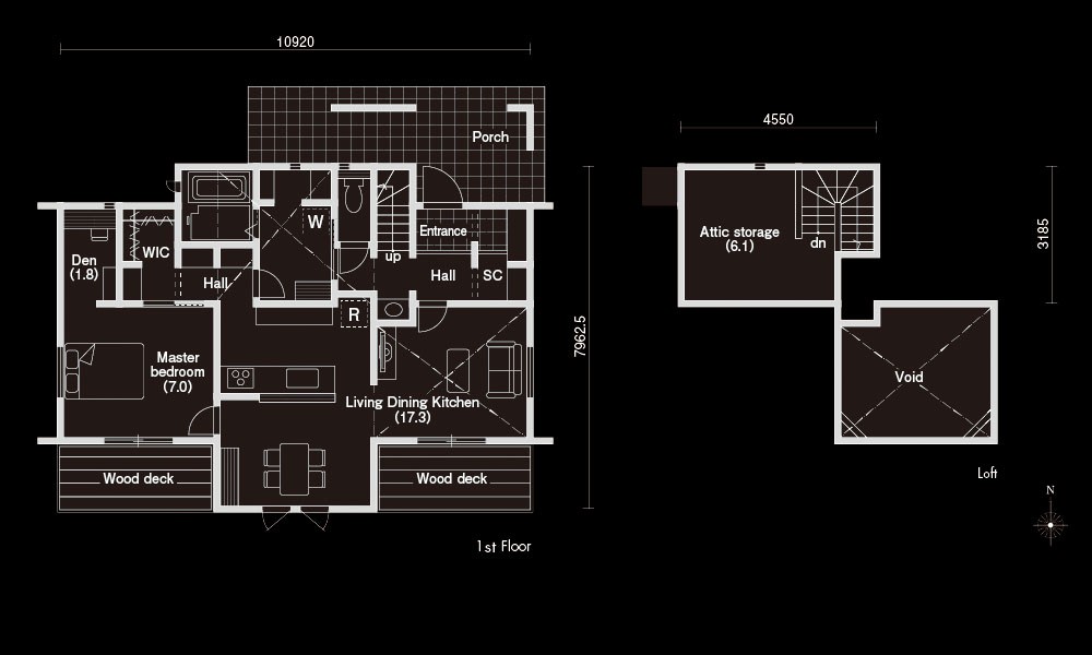 ここからは、夫婦二人暮らしにおすすめの7つの間取りシミュレーションを紹介します。20坪から30坪のサイズ感の住まいを厳選しましたので、ぜひ参考にしてください。【実例1】吹き抜けとロフトがある開放的な平屋(26.58坪)
