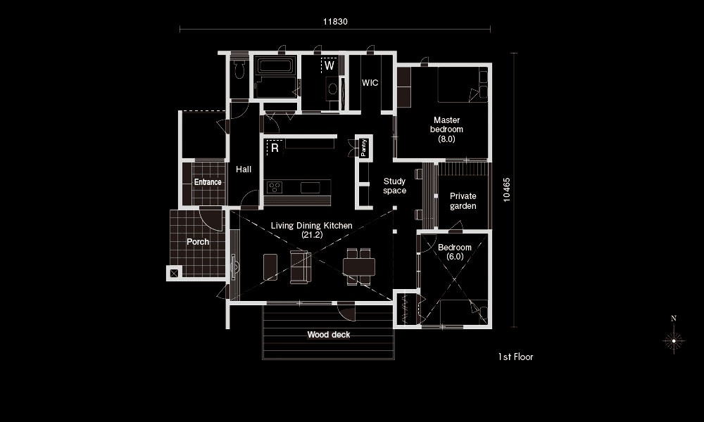 【実例6】東西南北に風の通り道がある平屋(20.79坪)